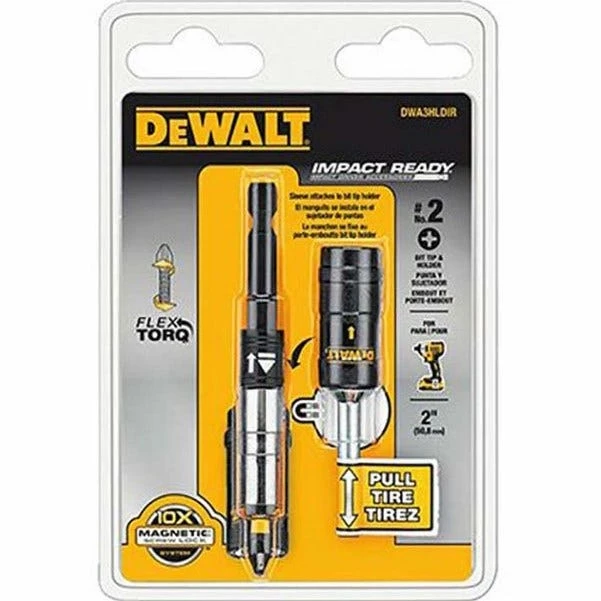 - The DEWALT DWA3HLDIR Flexor 3″ IMPACT READY Bit Tip Holder w/Screw lock System is CNC machined, resulting in accurate manufacturing for optimal fit into the screw recess.